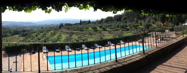 Het zwembad (15 x 8 m) met eigen wc en biedt een schilderachtig uitzicht op de Montalbano heuvels;